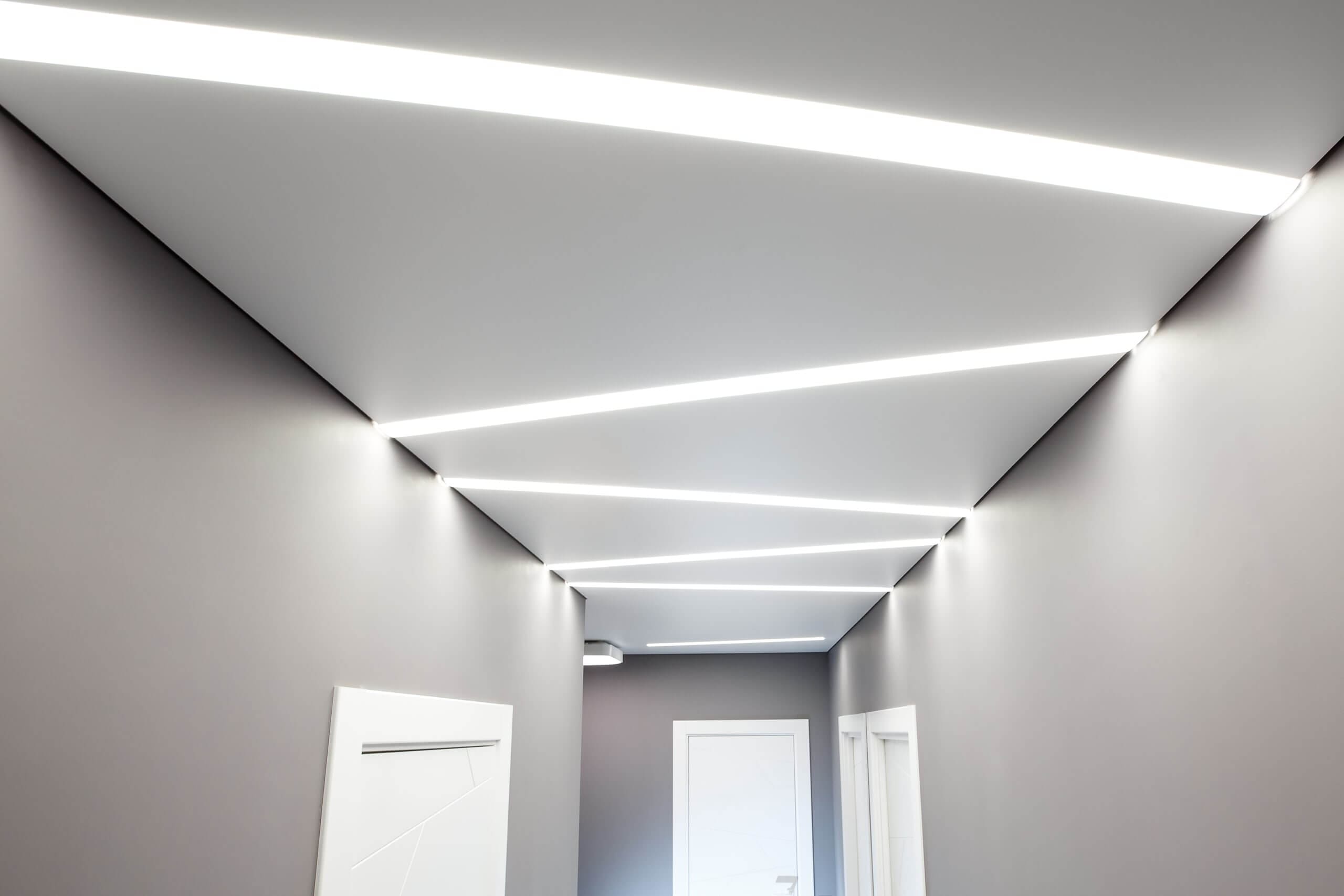 Потолок с парящими световыми линиями - это современный тренд последнего времени. Световая линия может выполнять роль как основного освещения, так и декоративно дополнять его. Световая полоса выглядит стильно, необычно и оригинально, отлично вписывается в интерьер жилых и коммерческих помещений, особенно в стиль хай-тек, лофт, модерн, минимализм.
